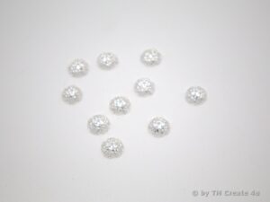 Diese eleganten Perlenkappen in hell Silber mit einem Durchmesser von 8 mm sind die perfekte Ergänzung für deine Schmuckkreationen. Sie eignen sich hervorragend zur Herstellung von Schutzengeln, Ohrringen, Armbändern, Halsketten und vielen weiteren DIY-Schmuckideen.